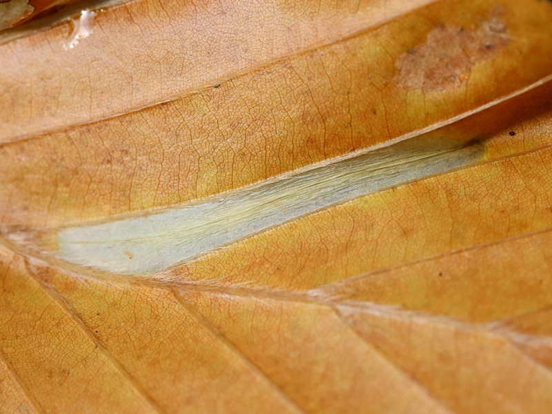 Plantes hôtes : Les chenilles minent le desssous des feuilles de Hêtres (Fagus sylvatica).