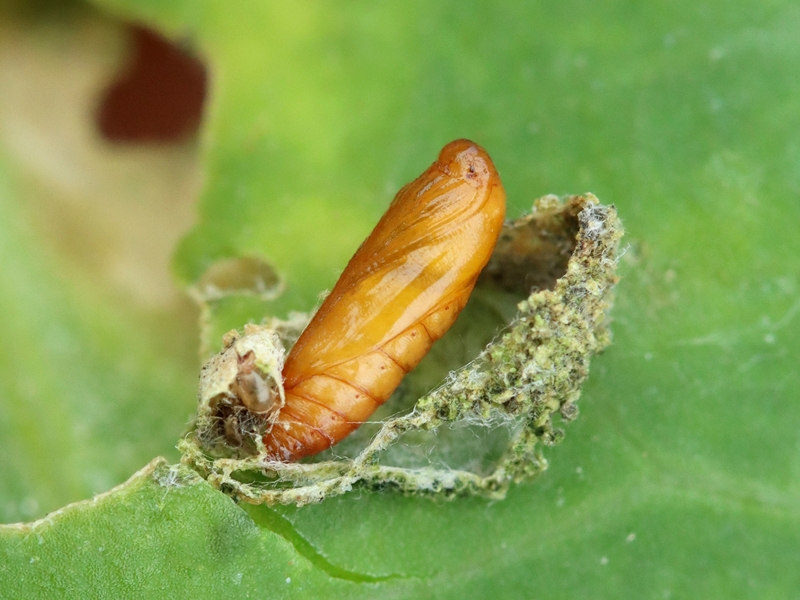Observations : Les jeunes larves forment un court couloir en spirale. Ensuite, la mine est une tache irrégulière ramifiée de couleur blanc verdâtre. Au stade final, de mi-août à fin septembre, la chenille vit libre parmi les feuilles. Hiverne au stade de nymphe. Espèce univoltine.