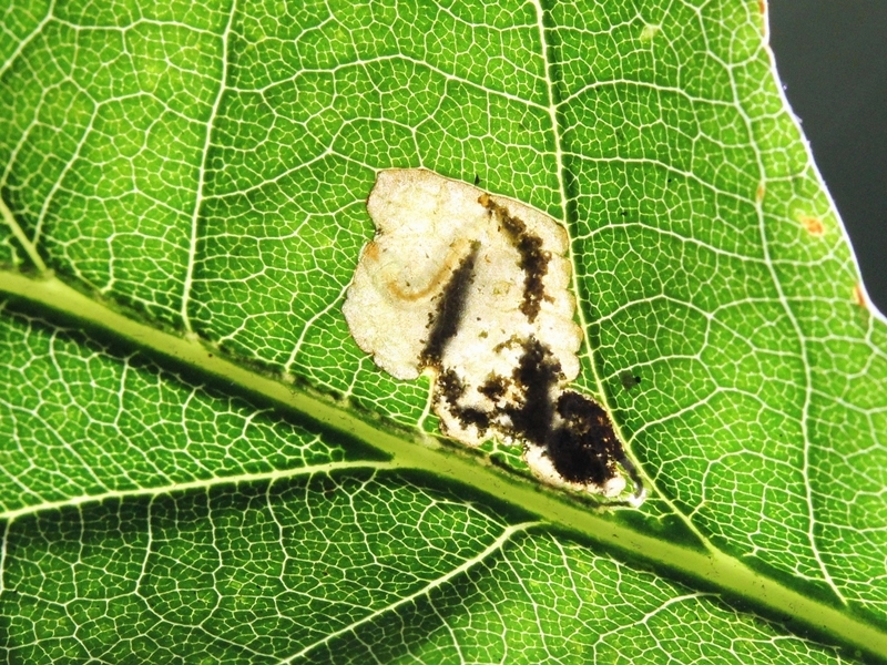Plantes hôtes : Chenilles mineuses de feuilles de chênes (Quercus). Les galeries sont visibles de juillet à octobre.