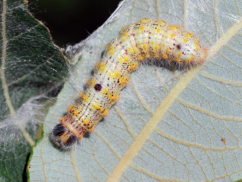Observations : Espèce bivoltine. Cocon entre 2 feuilles jointes. |